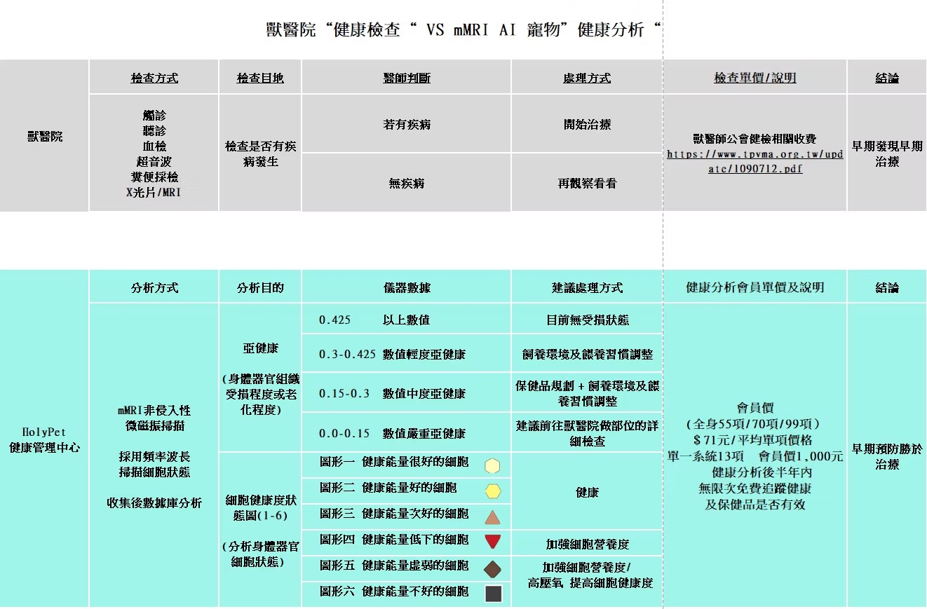寵物的健康檢查和寵物的亞健康分析是兩種不同的服務,它們的目的是不同的: