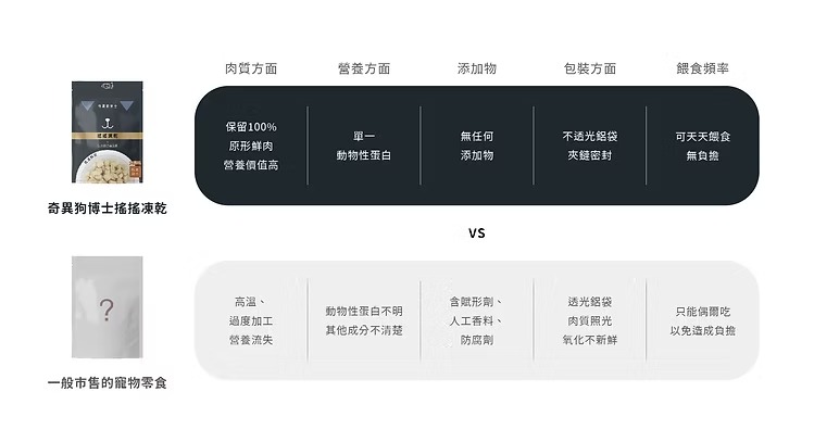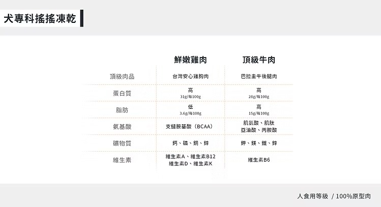 使用可溯源的安心肉品,100%原肉製成,透過凍乾技術保留肉品營養。