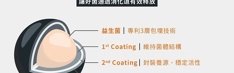確保好菌直達腸道,維持菌體結構、穩定活性、阻絕環境壓力。