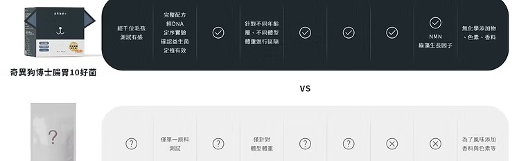 成分:麥芽糊精、玉米澱粉、菊糖、綠藻粉、複合益生菌(植物乳桿菌、乳雙歧桿菌、嗜酸乳桿菌、副乾酪乳桿菌、鼠李糖乳桿菌、發酵乳桿菌、乳酸乳球菌、唾液乳桿菌、短雙歧桿菌、兩歧雙歧桿菌、Synbio益生菌粉)、酵母萃取物(含NMN)、果寡糖、酵母萃取物(含葉酸)、益精粹益生菌發酵萃取粉