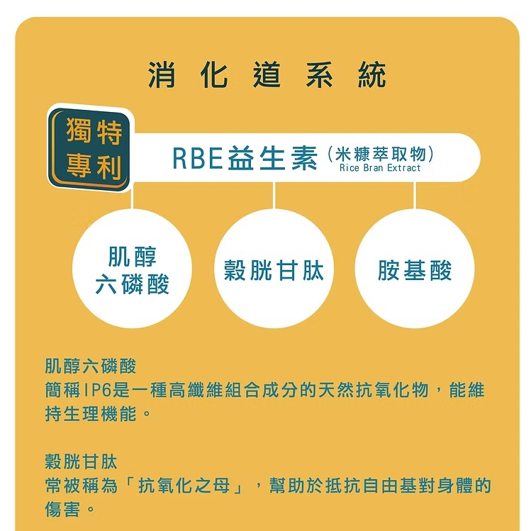 ◆腸胃道保健:肌醇六磷酸、穀胱甘肽、胺基酸